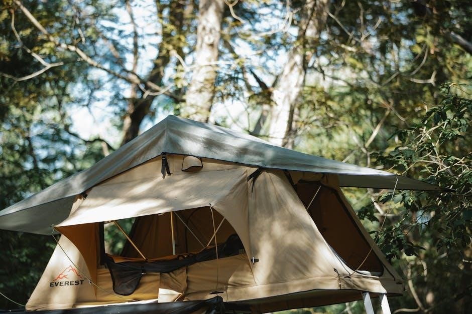 Regularly clean the fabric with mild soap and water; Allow it to dry completely before storing in a cool‚ dry place. Fold the tent neatly to prevent creases and damage‚ ensuring all parts are secure. Store in a sturdy bag to protect from dust and moisture. Avoid leaving the tent exposed to harsh weather for extended periods. Proper maintenance extends its lifespan and keeps it in great condition for future use.